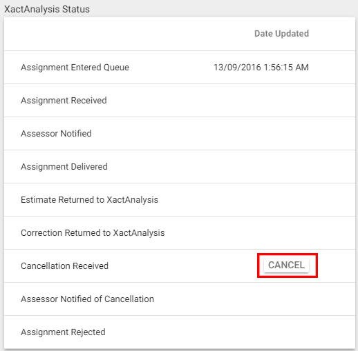 - In the XactAnalysis Status section, click Cancel next to the Cancellation Received status.