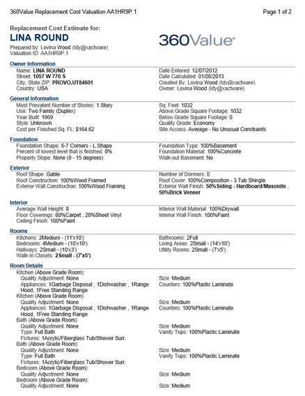 Valuation reports created in both 360Value and the full-featured version of Xactimate look similar. Here is an example of a 360Value valuation report: