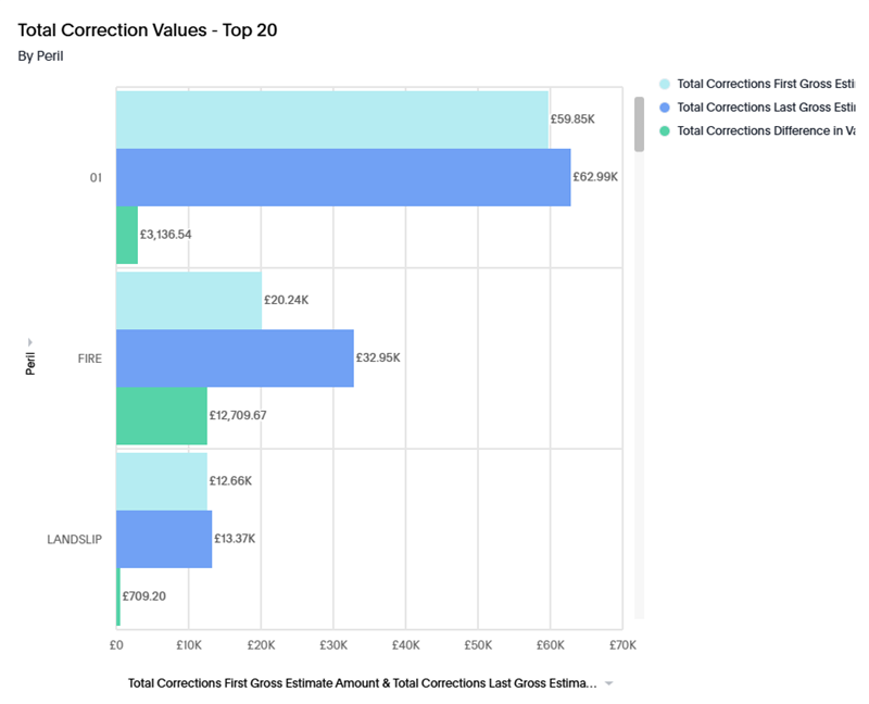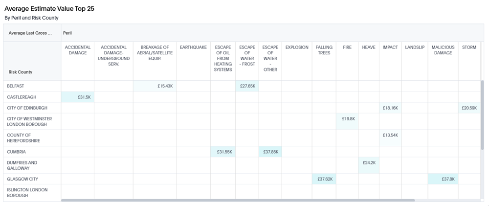 This liveboard contains several charts, graphs, and tables to help you analyse your peril data, including: