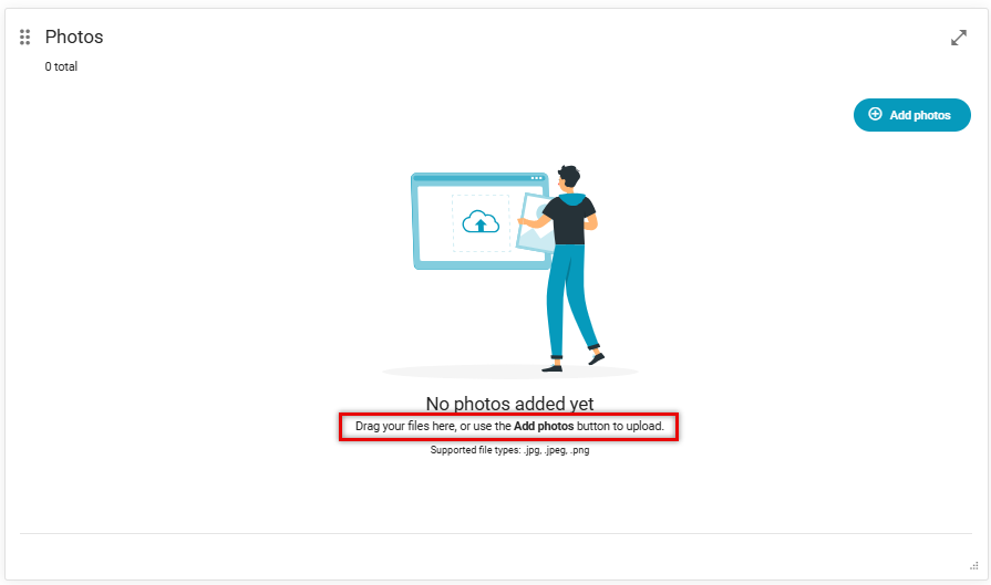 Alternatively, click the Add photos button to add a new photo to the assignment. From here, the process is the same as it was in the previous Assignment Detail design.