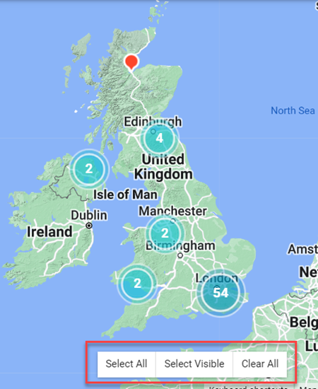 - Click Select Visible at the bottom of the map to select all of the assignments in the visible area of the map.