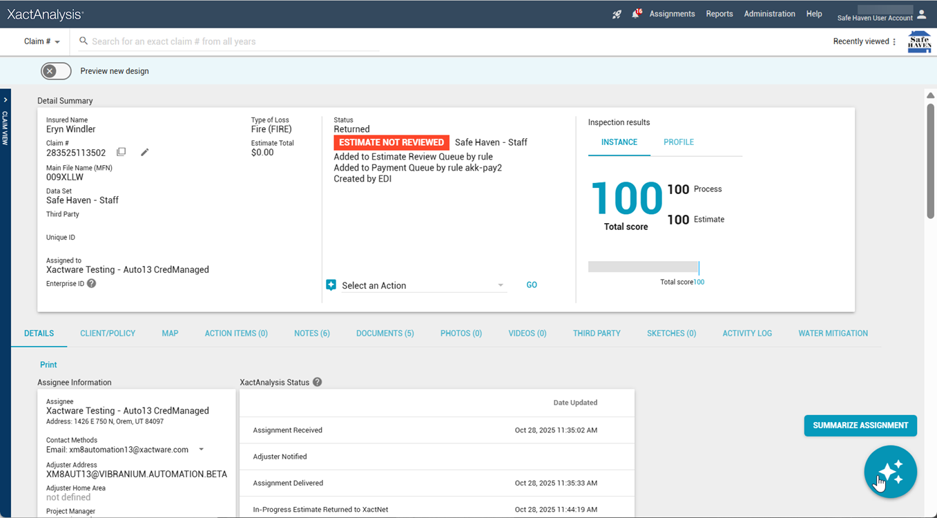 Assignment Summary is an exciting new feature that provides a quick overview of the assignment. It includes an AI-generated summary of the assignment’s notes and loss instructions, along with key claim information, coverages, and the top line items by cost.