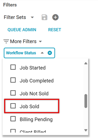 We also added Job Sold to Search! You can use it in the Workflow Status filter to view assignments that have a Job Sold status. Job Sold is also now one of the statuses that can appear in the Workflow Status column.