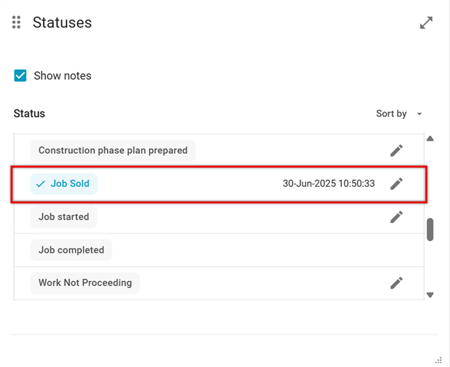 - We renamed the 'Job Sold' status to 'Work Proceeding'.