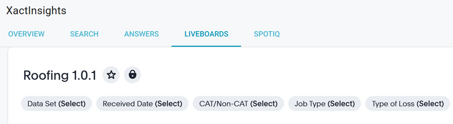 You can filter the entire liveboard by data set, received date, CAT/Non-Cat, RCV, hierarchy level, job type, organization level, and type of loss. These filters are located at the very top of the liveboard.