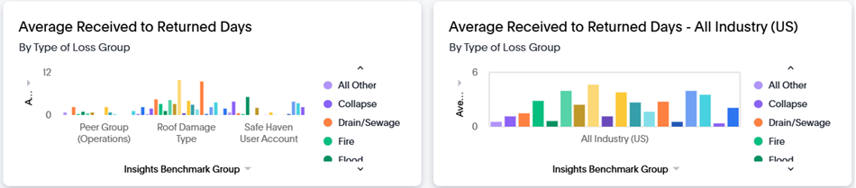 This liveboard includes data from two different worksheets: Claims and Industry Line Item Data. The data from these worksheets is essentially the same but at different levels. As a result, two Received Date filters were created, one per level, that only affect visualizations from the same worksheet. The Received Date-Claims filter only affects the Cycle Times by Data Set and the Cycle Times by ClaimXperience Used visualizations on the Cycle Times tab.