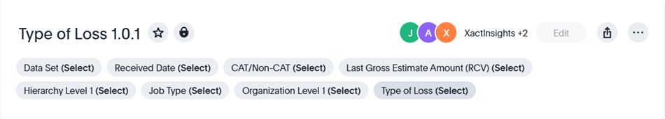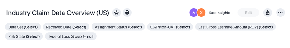 You can filter the entire liveboard by data set, received date, CAT/Non-CAT, RCV, hierarchy level, job type, organization level, and type of loss. These filters are located at the very top of the liveboard.