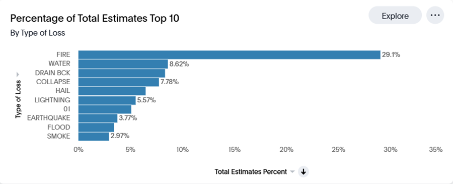 This liveboard contains several charts, graphs, and tables to help you analyze your type-of-loss data, including: