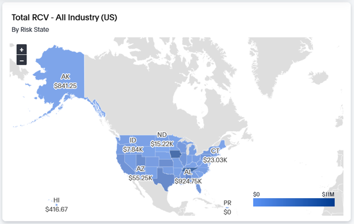 This map shows the total RCV by Risk State for the All Industry benchmark group.