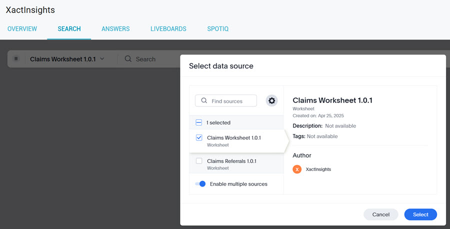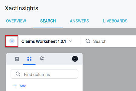 To get started in XactInsights Search, select the worksheets you want to work from.