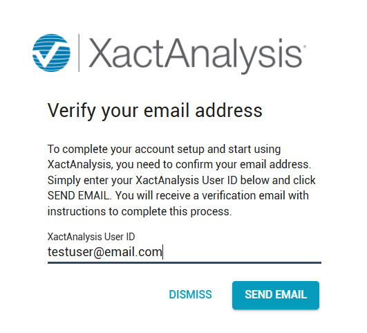 - In the field that appears below, enter your XactAnalysis User ID for the account, and select Verify Email Address.