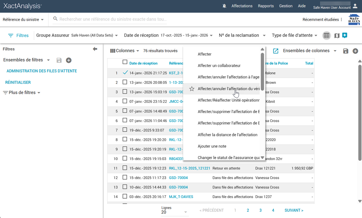 - Ouvrez le menu Sélectionner une action et sélectionnez Affecter/Supprimer l’affectation de l’examinateur d’estimation.