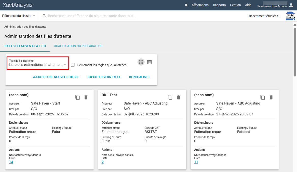 - Dans la liste déroulante Type de file d’attente, sélectionnez Estimations en attente de vérification.