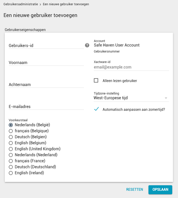 1. Voer de gegevens van de gebruiker in in de beschikbare velden.